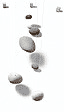 Surf-Harp. 2001 [Click to view] 7 beach-stones of various weights and sizes hung by wires from the ceiling, 16 wooden cubes arranged in a 300 cm circle. Energy is transferred from one stone to another, recreating the play of childhood. |