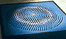 [Click to view] Painted wood with electric motor. 59 x 59 x 50 cm This piece stands on short legs like a small table. The rotating disc gives an effect like ripples in water constantly moving out from the centre. |