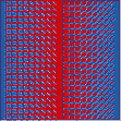 [Click to view] Acrylic on canvas. 125 x 125 cm Also produced as silkscreen in 2 versions 43 x 43 cm Early examples of optical (additive) colour mixing. |